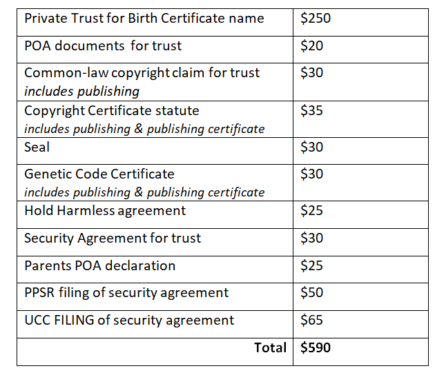 - Private Trust for Birth Certificate name $250 **